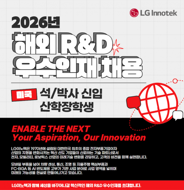 LG이노텍에서 미국 우수대학 재학생 분들을 대상으로 ‘Online Job Fair’를 진행할 예정입니다!