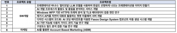 3. 모집 분야: SW 개발, 마케팅 프로젝트 (총 8개) 프로젝트 상세 및 FAQ 링크: https://docs.google.com/spreadsheets/d/1xn5EglDYzaJup4860SADzn8-RhP7lD1iqT_-LAc-874/edit?usp=sharing